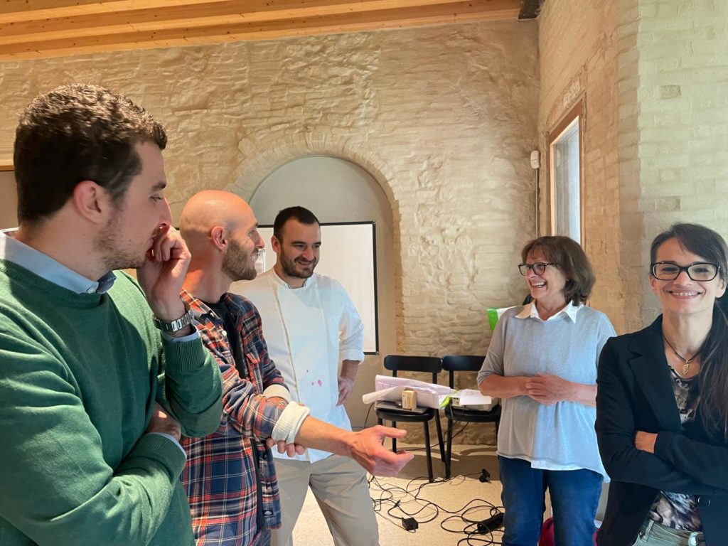 La mattina del sabato è proseguita con un lab di cucina: “MANI IN PASTA E STORIE SIRIANE”, facilitato da Mattia Cainelli e con la guida di Alessandro Trentin, il nostro chef, e di Lina, che lavora con Alessandro in cucina e le cui origini siriane apportano cultura e tradizioni alla nostra brigata. Così i partecipanti al barcamp si sono messi in gioco nella preparazione di un pasto italo-siriano, lavorando in piccoli gruppi, dove ogni passaggio è stata l’occasione per raccontare ingredienti, origini, simboli. Il prodotto della loro sperimentazione si è trasformato in un vero e proprio pranzo che il team ha trascorso nella Sala del Camino.